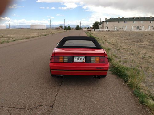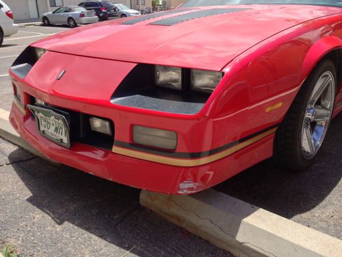 I have a beautiful 1988 Chevrolet Camaro Z28 IROC-Z Convertible in excellent condition the color is red the car only has 83,734 miles on it and always well maintained and in the garage most of its life. It has very little flaws just few scratches on front bumber and the driver seat has little tear in leather other than that the car drives excellent no problems at all. I just put new American Racing rims and tires and new battery as well this car gets alot of attention and is very fast great for a collector car or any camaro lover. I have always maintained the car with oil changes and have all the papers for the work ive done again this car drives amazing your getting a classic camaro with very little mileaged on it. Customer is responsible for shipping or pickup please bid with confidence the car is a true american classic and with summer time here nothing better than a convertible.
