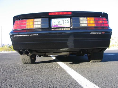 1990 Camaro IROC-Z, unmolested beautiful car! Runs and shifts perfectly. Power windows and locks. Excellent condition, no rips or tears on interior. No rust or corrosion. Never been smoked in. This car will be a collector, as '90 was the last year and were only produced for half year. I have the original window sticker and manuals. Everything works! Including rear hatch motor. Clean title and CARFAX, only 88,000 miles. Tasteful modifications: - BBK Throttle body - SLR headers - New paint (base coat/clear coat) I also just ordered new BF Goodrich G force Sport Comp II 245/50/16 tires, they will be mounted this week. You will not be disappointed, car gets lots of attention. Thanks for looking! |