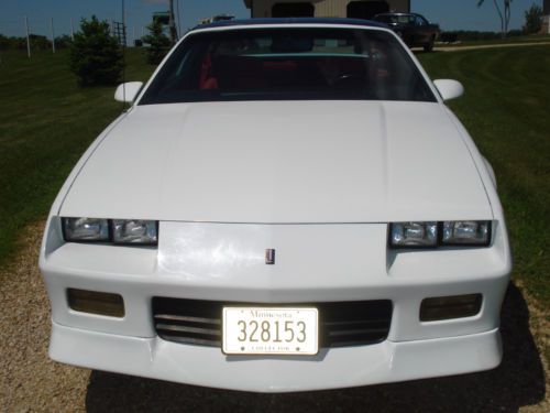 I am selling my 1991 Camaro RS.It is refrigerator white,with red interior.I bought the car in 94' with 35000 and now has 70900.I stored it in winter never driven in salt, no rust, so it is in great condition.It has 305 v8 with tunned port injection.Cruise air tilt,power windows locks and best of all T Tops.Runs great, all factory and needs nothing.I have a black braw for it i never put on.