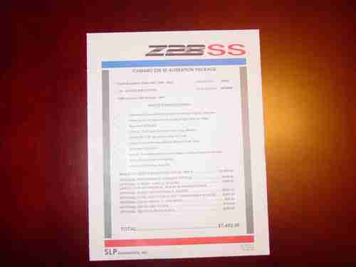Options: Bose Premium Sound, SS Alteration Package, Optional Performance Exhaust, Optional Limited Slip w/AAM Aluminum Cover, Optional Hurst Performance Shifter, Optional Level 2 Bilstein Suspension, Optional Z28 SS Floor Mats, Optional Z28 SS Car Cover, Optional Oil Cooler, CD Player