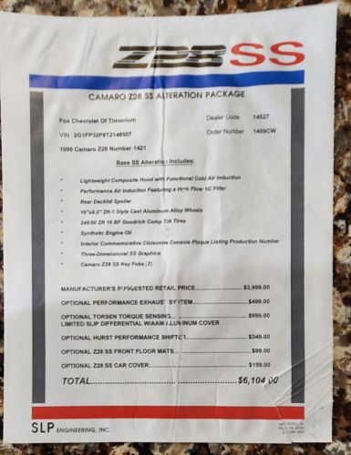 1996 Chevrolet Camaro Z28 Ss Convertible Slp Low Mileage on 2040-cars