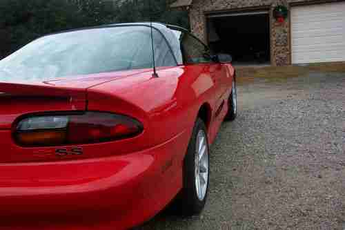 This is a very nice looking and driving 1998 Camaro SS for sale. I bought this car in 2006 and it has not seen any rain since then. It stays in a heated garage and the paint on the car is just about flawless. It has a very small scratch next to the driver door handle and that is the only scratch on it. It has nice leather power driver seat, 6 speed with hurst shifter, T tops, Cold air cond., P/s, 4 wheel disc brakes, power windows, power outside mirrors, power door locks, monsoon radio cd player, map lights on rear view mirror. It has hooker catback exhaust pipe and muffler, and sounds very nice, not too loud like flowmaster. The car has not been abused at all since I bought it. It does run real well. You won't find a nicer car with this many miles. I am retired and just don't have time to drive it any more. If you have any questions just email me or call me on the cel at (910-894-0624). The winning bidder needs to contact me and put $500.00 in pay pal account after auction ends and pay the remainder within 7 days after auction with Cash or Cashiers check. The check will have to be cleared before car is released. This car is for sale locally so the auction could end at any time. Happy bidding.