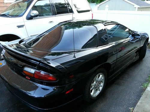 2000 chevrolet z28 camaro, 5.7l ls1 v8, 6 speed, 87xxxmi runs and drives great, Black with black leather interior, t-tops, Vehicle is in good overall condition, slight normal wear ie minor paint scratches, slight wear on seats. has a ram air hood and a ss body package. I ran the vin through a vin decoder and found it was ordered with special performance packages. they were all in numbers, so it appears they were ordered factory? Car comes with a brand new Borla cat back exhaust system $900. Car also comes with a new T-56 transmission with paperwork $2200. Reason is transmission will pop out of reverse occasionally. if you hold it in it seems to work fine. Has been like that since I bought the car in east windsor conn. I bought the car from a dealer for my wife a year ago, to match a 1999 z28 I own. I just happened to stay in reverse then, when we got it home and found the defect, we called the dealer the next day and they said you bought it "as is" its your problem now. So I decided to keep it. And also replaced all 4 oxygen sensors, both cats, thermostat, all fluids, front and rear brakes, plugs and wires, fuel filter, full syn oil changes every 3k, The car drives great. I took it on 200 mile trips to see my family regularly, and would not hesitate to drive it anywhere Now we are haveing our fourth child and have too many vehicles. If interested or would like more pics or video. You can contact me at identity14@yahoo.com