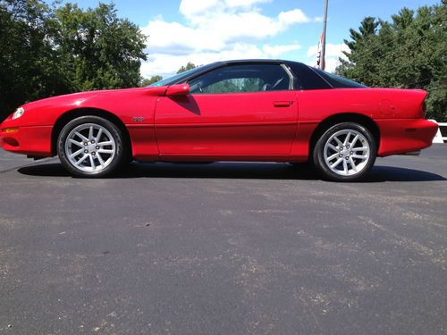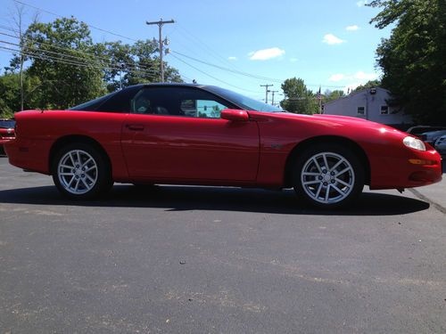 2002 Chevrolet Camaro Super Sport. Camaro enthusiasts rejoice! We are pleased to present this one owner Camaro Super Sport with 36000 original miles. Gorgeous victory red paint and body panels are free of any dings or scratches. The black leather interior is spotless and shows like new. Fully loaded this car features glass T tops, Monsoon CD sound and power driver seat. LS1 power under the hood with a six speed manual gear box. Garage kept, faithfully cleaned and maintained makes this Camaro one for your stable!
