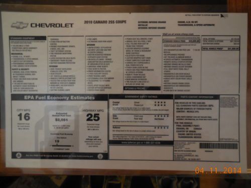 I'M SELLING MY AWESOME CAMARO BECAUSE OF UNEXPECTED DEBT, I HATE TO LET IT GO BUT I MUST. HERE IS THE DESCRIPTION OF THE CAR AS BEST AS I CAN DESCRIBE IT: IT IS A 2010 CAMARO 2SS INDIANPOLIS 500 CENTENNIAL PACE CAR REPLICA OPTION, ONE OF ONLY 200 SOLD IN THE US. THE CAR IS IN SHOWROOM CONDITION WITH THE EXCEPTION OF ONE SMALL HARDLY NOTICABLE PARKING LOT SPEED BUMP? SCRAPE ON THE FRONT LOWER RALLY STRIPES, SHOWN IN PICS. I DID NOT EVEN NOTICE IT UNTIL I HAD THE CAR HOME. THE FLOOR MATS SHOWN IN THE CAR ARE CUSTOM MADE LLOYD MATS THAT I HAD MADE FOR THE CAR AND I ALWAYS TAKE MY SHOES OFF WHEN I GET IN THE CAR TO DRIVE IT. I HAVE THE ORIGINAL WINDOW STICKER LAMINATEED AND ALL SERVICE RECORDS SINCE NEW. THE CAR WAS PURCHASED IN MICHIGAN AND ALMOST IMMEDIATTELY SHIPPED TO ARIZONA IN AN ENCLOSED TRANSPORTER WHERE IT HAS REMAINED SO NO WORRIES ABOUT RUST. IT HAS NEVER BEEN DRIVEN IN SNOW OR RAIN AND HAS ALWAYS BEEN GARAGED. IF PURCHASED IN ARIZONA OR ANOTHER PEOPLE FRIENDLY STATE THERE WILL BE NO SALES TAX WHEN YOU REGISTER THE CAR AS I IS A PRIVATE PART SALE. IT IS A FULLY OPTIONED CAR WITH ALL THE EXTRAS THAT WERE AVAILABLE IN 2010, INCLUDING TO NAME A FEW BUT NOT ALL. LIMITED SLIP DIFFERENTIAL, PERFORMANCE SUSPENSION, FRONT AND REAR FRONTAL & SIDE AIR BAGS, ONDSAT READY, SIRIUS/XM READY, STABILITRAK W/TRACTION CTL, BREMBO 4 WHEEL BRAKES W/ABS, TIRE PRESSURE MONITORING SYSTEM, HALOGEN HEADLAMPS, REAR PARKING SENSORS, BOSTON ACOUSTIC 9 SPEAKER STEREO SYSTEM W/DVD, TILT/TELESCOPIC STRG WHEEL, 4 PACK AUXILIARY GUAGES, HEATED SEATS, PWR DRIVERS SEAT, LEATHER WRAPPED STRG WHEEL W/CRUISE AND REDUNDANT RADIO CTLS, BLUETOOTH FOR PHONE, PWR WINDOWS AND LOCKS, AND MUCH MORE. THE INDIANAPOLIS 500 CENTENNIAL PACE CAR REPLICA OPTION INCLUDES: RS APPEARANCE PACKAGE, 2O" POLISHED ALUMINUM WHEELS, 6 SPD AUTO TRANS W/PADDLE SHIFTERS ON STRG WHEEL, REMOTE STARTING SYSTEM, INFERNO ORANGE METALLIC PAINT, INFERNO ORANGE ACCENT INTERIOR, FULL BODY WHITE PEARL RALLY STRIPES, INDIANAPOLIS 500 DOOR DECALS, INDIANAPOLIS 500 FENDER BADGES, UNIQUE BODY COLOR FRONT GRILLE INSERT, INFERNO ORANGE FRONT ENGINE COVER, INDIANAPOLIS 500 EMBROIDERED HEADRESTS, FLOOR MATS WITH ORANGE ACCENTS (NEVER USED). TERMS OF SALE ARE CASH OR WIRE TRANSFER ON DELIVERY, BUYER PAYS TRANSPORTATION CHAEGES. IF I HAVE LEFT ANYTHING OUT OR IF YOU HAVE ANY QUESTIONS OR NEED MORE PICS, FEEL FREE TO CALL ME ANY TIME (I AM RETIRED) BEFORE 8PM AZ TIME. MY NAME IS PAUL MY PHONE NO. IS 520-488-9022 |