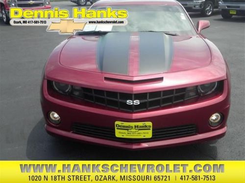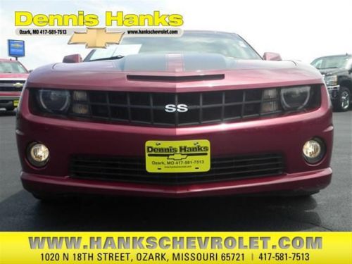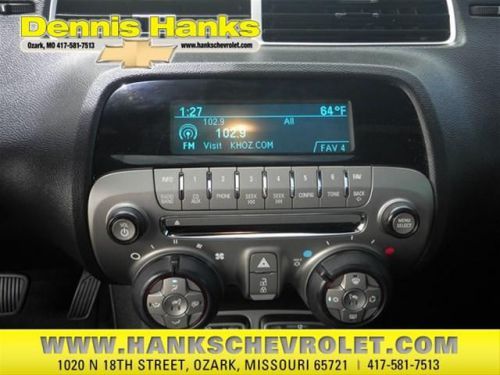 Welcome to Dennis Hanks Chevrolet where youd send a friend! Look no further than your Ozark Chevrolet dealer for new and used cars. We also proudly serve Springfield Nixa Branson and Southwest Missouri Chevrolet customers. We are proud to be celebrating our 28th anniversary as a 3rd generation family-owned store. For further assistance contact us by phone or email and our friendly staff will help you with all your auto needs. You win! This Coupe has less than 48k miles!! Chevrolet CERTIFIED.. Take a road any road. Now add this Coupe and watch how that road begins to look like a racetrack** Priced below NADA Retail!!! Bargain Price!!! Biggest Discounts Anywhere! Internet Deal on this dependable Camaro... How tempting are all the options on this Performance Vehicle: 2 Front Cup Holders 20' x 8' Fr & 20' x 9' Rr Aluminum 3-channel programmable) 3-Spoke Leather-Wrapped Steering Wheel 3.27 Axle Ratio 4-Wheel Antilock 4-Wheel Disc Brakes (Includes Brembo performance 4 piston front and 4 piston rear brakes) 6.2L V8 SFI Also Includes TAPshift manual shift controls on steering wheel AM/FM/CD-ROM/MP3 Analog Instrumentation (Includes Driver Information Center display...Chevrolet Certified Pre-Owned means that you not only get the reassurance of a 12mo/12000 mile Bumper-to-Bumper limited warranty and a 2 year/24000 mile Standard CPO Maintenance Plan but also up to a 5-Year/100000-Mile Powertrain Limited Warranty a 172-point inspection and reconditioning process 24hr roadside assistance and a complete vehicle history report. Dennis Hanks Chevrolet, "Where you'd send a friend."
