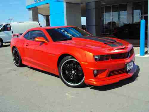 This is a real nice and clean trade in, 2010 Camaro SS that's not like any one else's you have seen. This car gives you a idea of what a transformers 3 Camaro in inferno Orange Metallic would look like. The transformer 3 style wheels, big rear wing, custom front fascia, new era performance air box and cool custom hood. Those of you who have been dreaming of this Camaro, knows that the 21" wheels and Pirelli PZero tires are a cool $6000.00. Also It sports the cool factory Ground effects Package, two tone seat and sunroof. I have personally driven this car and it's a Very Good one