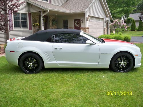 YOU ARE BIDDING ON A ONE OF A KIND FLAWLESS 2011 CHEVROLET CAMARO SS CONVERTIBLE. THIS CAR HAS BEEN METICULOUSLY MAINTAINED. IT IS LOADED FROM THE FACTORY WITH TO MANY OPTIONS TO LIST. PLEASE REFER TO WINDOW STICKER IN PICS. THE ONLY UPGRADES WERE DONE BY AN ASE CERTIFIED GM MECHANICS WHICH INCLUDE KOOKS HIGH PERFORMANCE HEADERS COMBINED WITH CORSA HIGH PERFORMANCE EXHAUST. IN ADDITION AMERICAN RACING WHEELS WERE ADDED. ( over 6k in additional accessories ) THIS CAR GETS THE LOOKS AND HAS THE PERFORMANCE TO MATCH. IF YOU HAVE ANY QUESTIONS PLEASE DO NOT HESITATE TO DROP ME A LINE AND I WILL REPLY PROMPTLY. HAPPY BIDDING AND I CAN ASSURE YOU THIS CAR IS TRULY A GEM. THE ONLY REASON I AM SELLING THIS BEAUTY IS STRICKLY LACK OF USE. THIS CAR STILL SMELLS NEW AND HAS A FULL BUMPER TO BUMPER WARRANTY THRU GM UNTIL 36000 MILES. THANKS FOR LOOKING. DEAN