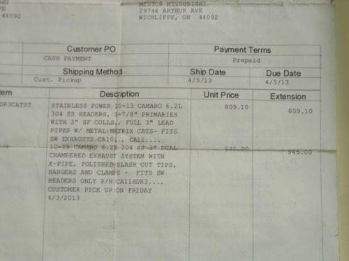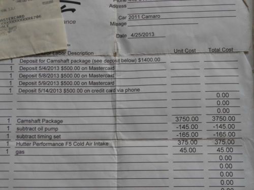 I have here for sale a beautiful 2011 Camaro SS with 17,xxx miles on it. The car was bought by my 66 year old father. He bought the car with 2,000 miles on it and has done all the performance upgrades under his ownership. The car has the following upgrades: "Hutters performance" comps cam kit, titanium valve springs, titanium retainers, titanium keepers, pushrods, cold air intake, 180 thermostat, ecu remapped on dyno 447 rwhp, (all work was performed by Hutters Performance here in Ohio) complete 3'' stainless exhaust, long tube headers, high flow cats, (all from stainless works) gauge cluster in front of shifter, lots of $$. The car still has the stock tires from new on it! I do have a You tube video of it running, the car has a mean rumble that you have to hear to appreciate! My father also has a 2014 Harley Street Glide, a 2004 supercharged cobra mustang and a custom 1990 Harley Dyna low rider all for sale!! Any questions email me and we can discuss it further. Thanks for looking On Aug-26-14 at 18:33:02 PDT, seller added the following information: |