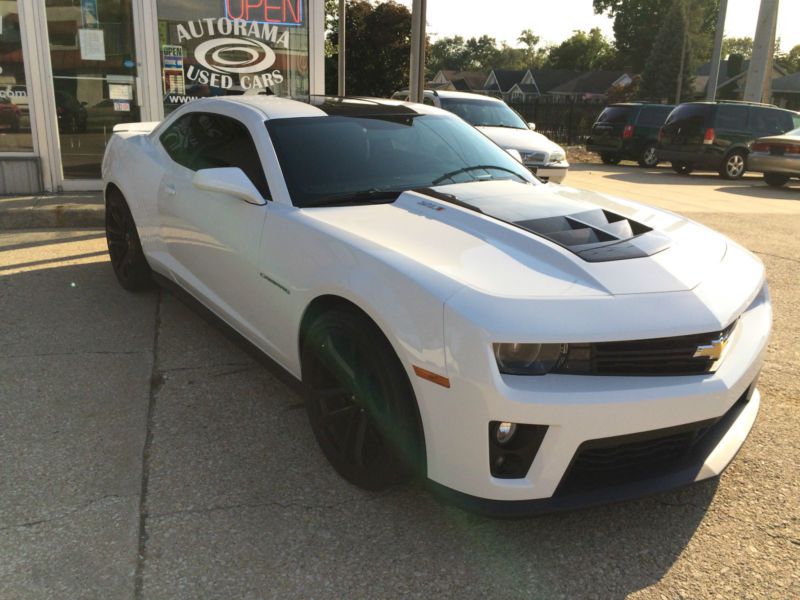 Like new 2013 ZL1 Camaro. This Camaro is loaded with options, 580hp 6.2L Supercharged V8, 6 speed manual, navigation, carbon fiber hood, stripe on roof and deck lid, black 10 spoke wheels. It is one of 349 Summit White ZL1 Coupe's and that number does not include the breakdown for non sunroof cars. This car does have a rebuilt title due to water. Every wiring harness and module in the vehicle was replaced with parts from GM.
