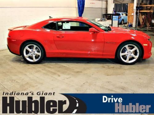 Red Hot exterior and 1SS Black cloth interior, SS trim. Auxiliary Audio Input, Telematics, TRANSMISSION, 6-SPEED AUTOMATIC, 1SS PREFERRED EQUIPMENT GROUP, ENGINE, 6.2L V8 SFI, Satellite Radio, Head Airbag, Aluminum Wheels SEE MORE!======KEY FEATURES INCLUDE: Satellite Radio, Auxiliary Audio Input, Telematics, Aluminum Wheels. Rear Spoiler, MP3 Player, Keyless Entry, Remote Trunk Release, Steering Wheel Audio Controls. ======OPTION PACKAGES: TRANSMISSION, 6-SPEED AUTOMATIC includes TAPshift manual shift controls on steering wheel, 1SS PREFERRED EQUIPMENT GROUP includes Standard Equipment, ENGINE, 6.2L V8 SFI (400 hp [298.3 kW] @ 5900 rpm, 410 lb-ft of torque [553.5 N-m] @ 4300 rpm). SS with Red Hot exterior and 1SS Black cloth interior features a 8 Cylinder Engine with 400 HP at 5900 RPM*. ======EXPERTS ARE SAYING: Edmunds.com's review says Driven around turns, the Camaro grips hard and steers with precision.. ======MORE ABOUT US: After more than 50 years in business, The Hubler Auto Group, through the power of ten central Indiana locations, has literally sold hundreds of thousands of vehicles and is one of the oldest and most prolific auto dealers in the State employing 550 people. The Hubler Auto Group can claim the title for selling more G.M. vehicles in the State of Indiana than any other dealer or dealer group, and has earned the right to brag of having the largest and most loyal customer Horsepower calculations based on trim engine configuration. Please confirm the accuracy of the included equipment by calling us prior to purchase. FREE Window Tint OR Unlimited 1 Year CarWash Pass with any vehicle purchase.* Central Indiana's LARGEST Chevy Dealer! We have great finance rates and rebate incentives available on our new vehicle inventory! Call us today for the details at 866-856-4211. Our Internet Customer Care Team is on-hand to take your call! *Some restrictions may apply. See dealer for details.