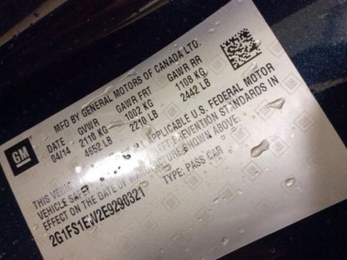 VIN (Vehicle Identification Number): 2G1FS1EW2E9290321