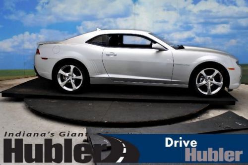 Heated Leather Seats, Premium Sound System, Satellite Radio, iPod/MP3 Input, TRANSMISSION, 6-SPEED AUTOMATIC, ENGINE, 3.6L SIDI DOHC V6 VVT, 2LT PREFERRED EQUIPMENT GROUP. Silver Ice Metallic exterior and Black interior, LT trim. SEE MORE!======KEY FEATURES INCLUDE: Leather Seats, Heated Driver Seat, Back-Up Camera, Premium Sound System, Satellite Radio, iPod/MP3 Input, Heated Seats, Heated Leather Seats MP3 Player, Onboard Communications System, Keyless Entry, Remote Trunk Release, Steering Wheel Controls. ======OPTION PACKAGES: RS PACKAGE includes (R42) 20 x 8 front and 20 x 9 rear flangeless, painted aluminum wheels with Midnight Silver finish, (D80) rear spoiler, (BD8) body-color roof ditch molding, (T4F) high intensity discharge headlamps and (T3N) separate Daytime Running Lamps; shark-fin antenna is body-color, TRANSMISSION, 6-SPEED AUTOMATIC includes TAPshift manual shift controls on steering wheel, 2LT PREFERRED EQUIPMENT GROUP includes Standard Equipment, ENGINE, 3.6L SIDI DOHC V6 VVT (323 hp [240.8 kW] @ 6800 rpm, 278 lb-ft of torque [375.3 N-m] @ 4800 rpm) (STD). LT with Silver Ice Metallic exterior and Black interior features a V6 Cylinder Engine with 323 HP at 6800 RPM*. 2 Years Free Maintenace, Free Oil Changes For One Year! ======EXPERTS CONCLUDE: Edmunds.com explains Driven around turns, the Camaro grips hard and steers with precision.. ======MORE ABOUT US: After more than 50 years in business, The Hubler Auto Group, through the power of ten central Indiana locations Horsepower calculations based on trim engine configuration. Fuel economy calculations based on original manufacturer data for trim engine configuration. Please confirm the accuracy of the included equipment by calling us prior to purchase. Hubler Chevrolet Shelbyville gives everyone who purchases a new or pre-owned vehicle FREE Oil Changes for a YEAR!!! Call Josh Davis New Car Sales Manager for Hubler Chevrolet Shelbyville, today and set up your appointment. 888-897-0071
