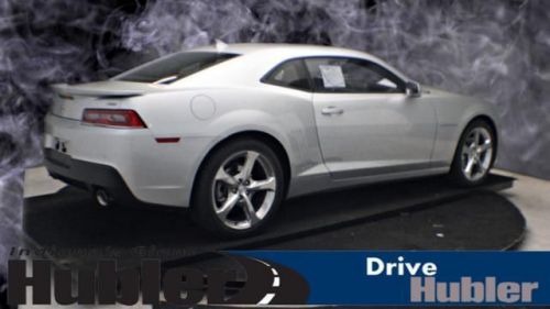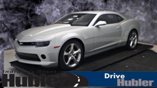 Heated Leather Seats, Premium Sound System, Satellite Radio, iPod/MP3 Input, TRANSMISSION, 6-SPEED AUTOMATIC, 2LT PREFERRED EQUIPMENT GROUP, ENGINE, 3.6L SIDI DOHC V6 VVT. Silver Ice Metallic exterior and Black interior, LT trim. CLICK ME!======KEY FEATURES INCLUDE: Leather Seats, Heated Driver Seat, Back-Up Camera, Premium Sound System, Satellite Radio, iPod/MP3 Input, Heated Seats, Heated Leather Seats MP3 Player, Onboard Communications System, Keyless Entry, Remote Trunk Release, Steering Wheel Controls. ======OPTION PACKAGES: RS PACKAGE includes (R42) 20 x 8 front and 20 x 9 rear flangeless, painted aluminum wheels with Midnight Silver finish, (D80) rear spoiler, (BD8) body-color roof ditch molding, (T4F) high intensity discharge headlamps and (T3N) separate Daytime Running Lamps; shark-fin antenna is body-color, TRANSMISSION, 6-SPEED AUTOMATIC includes TAPshift manual shift controls on steering wheel, 2LT PREFERRED EQUIPMENT GROUP includes Standard Equipment, ENGINE, 3.6L SIDI DOHC V6 VVT (323 hp [240.8 kW] @ 6800 rpm, 278 lb-ft of torque [375.3 N-m] @ 4800 rpm) (STD). LT with Silver Ice Metallic exterior and Black interior features a V6 Cylinder Engine with 323 HP at 6800 RPM*. 2 Years Free Maintenace, Free Oil Changes For One Year! ======EXPERTS REPORT: Edmunds.com's review says Driven around turns, the Camaro grips hard and steers with precision.. ======WHY BUY FROM US: After more than 50 years in business, The Hubler Auto Group, through the power of ten central Indiana locations Horsepower calculations based on trim engine configuration. Fuel economy calculations based on original manufacturer data for trim engine configuration. Please confirm the accuracy of the included equipment by calling us prior to purchase. Hubler Chevrolet Shelbyville gives everyone who purchases a new or pre-owned vehicle FREE Oil Changes for a YEAR!!! Call Josh Davis New Car Sales Manager for Hubler Chevrolet Shelbyville, today and set up your appointment. 888-897-0071