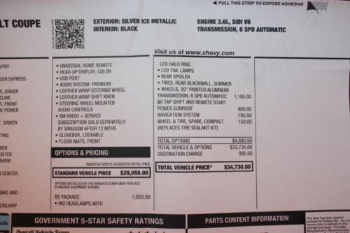 Moonroof, Heated Leather Seats, Satellite Radio, iPod/MP3 Input. LT trim, Silver Ice Metallic exterior and Black interior. CLICK NOW!======KEY FEATURES INCLUDE: Leather Seats, Heated Driver Seat, Back-Up Camera, Premium Sound System, Satellite Radio, iPod/MP3 Input, Onboard Communications System, Heated Seats, Heated Leather Seats MP3 Player, Remote Trunk Release, Keyless Entry, Steering Wheel Controls, Heated Mirrors. ======OPTION PACKAGES: RS PACKAGE includes (R42) 20 x 8 front and 20 x 9 rear flangeless, painted aluminum wheels with Midnight Silver finish, (D80) rear spoiler, (BD8) body-color roof ditch molding, (T4F) high intensity discharge headlamps and (T3N) separate Daytime Running Lamps; shark-fin antenna is body-color, TRANSMISSION, 6-SPEED AUTOMATIC includes TAPshift manual shift controls on steering wheel, SUNROOF, POWER WITH EXPRESS OPEN AND VENTING, 2LT PREFERRED EQUIPMENT GROUP includes Standard Equipment, ENGINE, 3.6L SIDI DOHC V6 VVT (323 hp [240.8 kW] @ 6800 rpm, 278 lb-ft of torque [375.3 N-m] @ 4800 rpm) (STD). LT with Silver Ice Metallic exterior and Black interior features a V6 Cylinder Engine with 323 HP at 6800 RPM*. Non-Smoker vehicle. ======EXPERTS CONCLUDE: Edmunds.com explains Driven around turns, the Camaro grips hard and steers with precision.. ======OUR OFFERINGS: At the Orr Group in Texarkana, TX we treat the needs of each individual customer. We know that you have high expectations, and as a dealer we enjoy the challenge of meeting and exceeding those expectations each and every time. Allow us to demonstrate our commitment to excellence. Our experienced sales staff is eager to share its knowledge and enthusiasm with you. Horsepower calculations based on trim engine configuration. Fuel economy calculations based on original manufacturer data for trim engine configuration. Please confirm the accuracy of the included equipment by calling us prior to purchase. Orr Chevrolet in Texarkana is your Chevy Headquarters!*These prices include all applicable rebates through GM for Zip Code 75503. Although rebates are pretty standard everywhere, your location will ultimately determine which incentives you qualify for. We do not include accessories or dealer installed options in our pricing. Please call to confirm trim, mileage, options, and to ensure availability