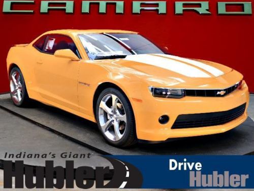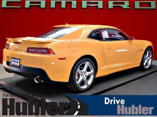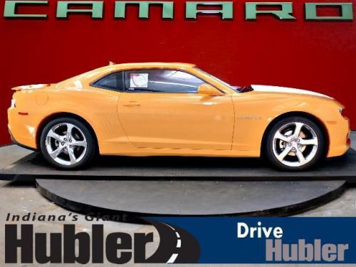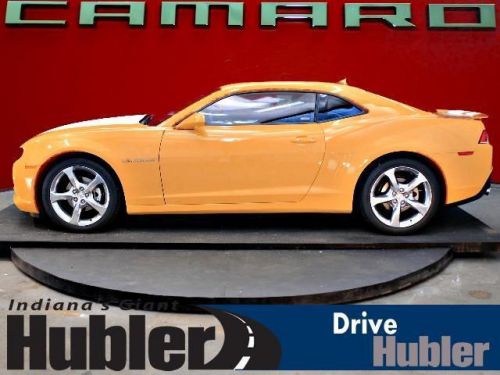 Moonroof, Heated Leather Seats, Satellite Radio, iPod/MP3 Input, Onboard Communications System, ENGINE, 3.6L SIDI DOHC V6 VVT, TRANSMISSION, 6-SPEED AUTOMATIC. LT trim, Bright Yellow exterior and 2LT Black leather interior. SEE MORE!======KEY FEATURES INCLUDE: Leather Seats, Heated Driver Seat, Back-Up Camera, Premium Sound System, Satellite Radio, iPod/MP3 Input, Onboard Communications System, Heated Seats, Heated Leather Seats. MP3 Player, Remote Trunk Release, Keyless Entry, Steering Wheel Controls, Electronic Stability Control. ======OPTION PACKAGES: RS PACKAGE includes (R42) 20 x 8 front and 20 x 9 rear flangeless, painted aluminum wheels with Midnight Silver finish, (D80) rear spoiler, (BD8) body-color roof ditch molding, (T4F) high intensity discharge headlamps and (T3N) separate Daytime Running Lamps; shark-fin antenna is body-color, TRANSMISSION, 6-SPEED AUTOMATIC includes TAPshift manual shift controls on steering wheel, SUNROOF, POWER WITH EXPRESS OPEN AND VENTING, 2LT PREFERRED EQUIPMENT GROUP includes Standard Equipment, ENGINE, 3.6L SIDI DOHC V6 VVT (323 hp [240.8 kW] @ 6800 rpm, 278 lb-ft of torque [375.3 N-m] @ 4800 rpm) (STD). LT with Bright Yellow exterior and 2LT Black leather interior features a V6 Cylinder Engine with 323 HP at 6800 RPM*. ======EXPERTS REPORT: Edmunds.com's review says Driven around turns, the Camaro grips hard and steers with precision.. ======WHO WE ARE: After more than 50 years in business, The Hubler Auto Group, through the power of ten central Indiana locations Horsepower calculations based on trim engine configuration. Fuel economy calculations based on original manufacturer data for trim engine configuration. Please confirm the accuracy of the included equipment by calling us prior to purchase. FREE Window Tint OR Unlimited 1 Year CarWash Pass with any vehicle purchase.* Central Indiana's LARGEST Chevy Dealer! We have great finance rates and rebate incentives available on our new vehicle inventory! Call us today for the details at 866-797-3549. Our Internet Customer Care Team is on-hand to take your call! *Some restrictions may apply. See dealer for details.