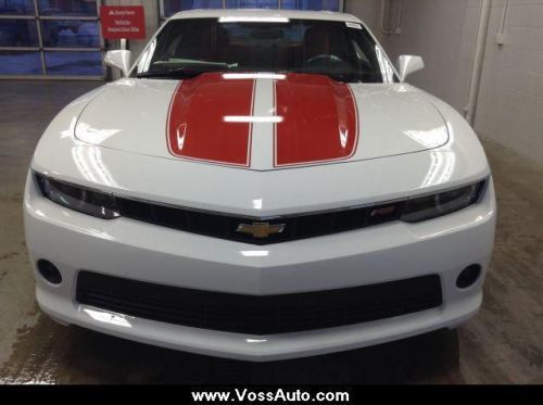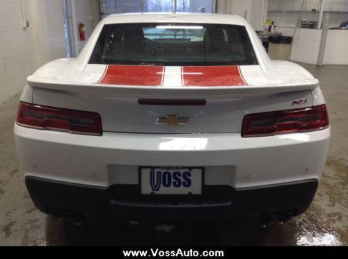 Your lucky day! Are you READY for a Chevrolet?! This great 2014 Chevrolet Camaro is the car that you have been looking to get your hands on. It is nicely equipped with features such as 3-Spoke Leather-Wrapped Steering Wheel, 4-Wheel Antilock 4-Wheel Disc Brakes, 4-Wheel Disc Brakes, 9 Speakers, ABS brakes, Air Conditioning, Analog Instrumentation, Auto-dimming door mirrors, Auto-dimming Rear-View mirror, Boston Acoustics Premium 9-Speaker Audio System, Brake assist, Bumpers: body-color, Delay-off headlights, Driver door bin, Driver vanity mirror, Dual front impact airbags, Dual front side impact airbags, Electric Rear-Window Defogger, Electronic Cruise Control, Electronic Stability Control, Emergency communication system, Four wheel independent suspension, Front anti-roll bar, Front Bucket Seats, Front Center Armrest, Front fog lights, Front Leather Seating Surfaces, Front reading lights, Front Sport Bucket Seats, Fully automatic headlights, Garage door transmitter, Heads-Up Display, Head-Up Display, Heated door mirrors, Heated Driver & Front Passenger Seats, Heated front seats, Illuminated entry, Leather Shift Knob, Leather-Wrapped Shift Knob, Low tire pressure warning, Occupant sensing airbag, Outside temperature display, Overhead airbag, Panic alarm, Passenger door bin, Passenger vanity mirror, Power door mirrors, Power driver seat, Power passenger seat, Power Programmable Door Locks, Power steering, Power windows, Radio data system, Rear anti-roll bar, Rear window defroster, Remote Keyless Entry, Remote keyless entry, Security system, SiriusXM Satellite Radio, Speed control, Speed-sensing steering, StabiliTrak, Stainless-Steel Dual-Outlet Exhaust, Steering Wheel Mounted Audio Controls, Steering wheel mounted audio controls, Tachometer, Telescoping steering wheel, Tilt steering wheel, Traction control, Trip computer, Universal Home Remote, Variably intermittent wipers, and Voltmeter. Don't be surprised when you take this terrific Chevrolet Camaro down the road an We are proud to announce that Voss Chevrolet was awarded the Better Business Bureau 2011 Eclipse Integrity Award! **Contact us To Guarantee This Special Internet Price and Schedule A Test Drive Today!** At Voss Chevrolet we've been creating higher standards for over 40 years!