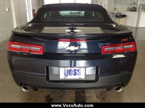 No games, just business! Call ASAP! Voss Chevrolet is proud to offer this gorgeous 2014 Chevrolet Camaro. Don't be surprised when you take this terrific Chevrolet Camaro down the road and find yourself enamored with its handling and falling in love with REAL driving all over again. This convertible is nicely equipped with features such as 3-Spoke Leather-Wrapped Steering Wheel, 4-Wheel Antilock 4-Wheel Disc Brakes, 4-Wheel Disc Brakes, 8 Speakers, ABS brakes, Air Conditioning, Analog Instrumentation, Auto-dimming door mirrors, Auto-dimming Rear-View mirror, Brake assist, Bumpers: body-color, Convertible roof lining, Delay-off headlights, Driver door bin, Driver vanity mirror, Dual front impact airbags, Dual front side impact airbags, Electric Rear-Window Defogger, Electronic Cruise Control, Electronic Stability Control, Emergency communication system, Four wheel independent suspension, Front anti-roll bar, Front Bucket Seats, Front Center Armrest, Front fog lights, Front Leather Seating Surfaces, Front reading lights, Front Sport Bucket Seats, Fully automatic headlights, Garage door transmitter, Glass rear window, Heads-Up Display, Head-Up Display, Heated door mirrors, Heated Driver & Front Passenger Seats, Heated front seats, Illuminated entry, Leather Shift Knob, Leather-Wrapped Shift Knob, Low tire pressure warning, Occupant sensing airbag, Outside temperature display, Panic alarm, Passenger door bin, Passenger vanity mirror, Power convertible roof, Power door mirrors, Power driver seat, Power passenger seat, Power Programmable Door Locks, Power steering, Power windows, Radio data system, Rear anti-roll bar, Rear window defroster, Remote Keyless Entry, Remote keyless entry, Security system, SiriusXM Satellite Radio, Speed control, Speed-sensing steering, Spoiler, StabiliTrak, Stainless-Steel Dual-Outlet Exhaust, Steering Wheel Mounted Audio Controls, Steering wheel mounted audio controls, Tachometer, Telescoping steering wheel, Tilt steering wheel, Traction contr We are proud to announce that Voss Chevrolet was awarded the Better Business Bureau 2011 Eclipse Integrity Award! **Contact us To Guarantee This Special Internet Price and Schedule A Test Drive Today!** At Voss Chevrolet we've been creating higher standards for over 40 years!