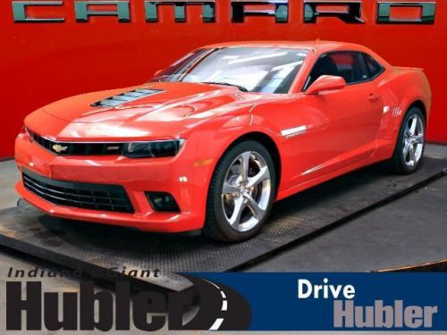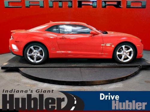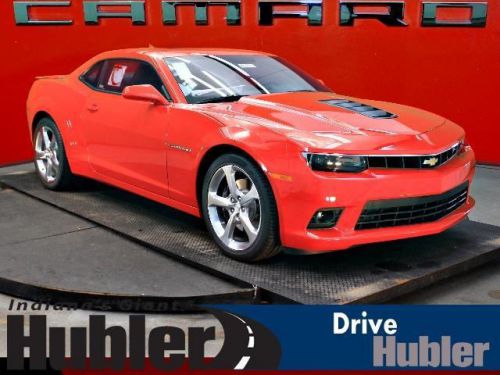 Heated Leather Seats, Auxiliary Audio Input, Telematics, Satellite Radio, RS PACKAGE, SUNROOF, POWER WITH EXPRESS OPEN AND.. EXHAUST, DUAL-MODE, PERFORMANCE, Aluminum Wheels. RED HOT exterior and BLACK interior, SS trim. AND MORE!======KEY FEATURES INCLUDE: Leather Seats, Heated Front Seat(s), Back-Up Camera, Premium Sound System, Satellite Radio, Auxiliary Audio Input, Telematics. MP3 Player, Remote Trunk Release, Keyless Entry, Steering Wheel Audio Controls, Heated Mirrors. ======OPTION PACKAGES: RS PACKAGE includes (R42) 20 x 8 front and 20 x 9 rear flangeless, painted aluminum wheels with Midnight Silver finish, (D80) rear spoiler, (BD8) body-color roof ditch molding, (T4F) high intensity discharge headlamps and (T3N) separate Daytime Running Lamps; shark-fin antenna is body-color, SUNROOF, POWER WITH EXPRESS OPEN AND VENTING, EXHAUST, DUAL-MODE, PERFORMANCE. SS with RED HOT exterior and BLACK interior features a 8 Cylinder Engine with 426 HP at 5900 RPM*. ======EXPERTS REPORT: Edmunds.com's review says Driven around turns, the Camaro grips hard and steers with precision.. ======MORE ABOUT US: After more than 50 years in business, The Hubler Auto Group, through the power of ten central Indiana locations, has literally sold hundreds of thousands of vehicles and is one of the oldest and most prolific auto dealers in the State employing 550 people. The Hubler Auto Group can claim the title for selling more G.M. vehicles in the State of Indiana than any other dealer or dealer group, and has earned the right to brag of having the largest and most loyal customer Horsepower calculations based on trim engine configuration. Please confirm the accuracy of the included equipment by calling us prior to purchase. FREE Window Tint OR Unlimited 1 Year CarWash Pass with any vehicle purchase.* Central Indiana's LARGEST Chevy Dealer! We have great finance rates and rebate incentives available on our new vehicle inventory! Call us today for the details at 866-856-4211. Our Internet Customer Care Team is on-hand to take your call! *Some restrictions may apply. See dealer for details.