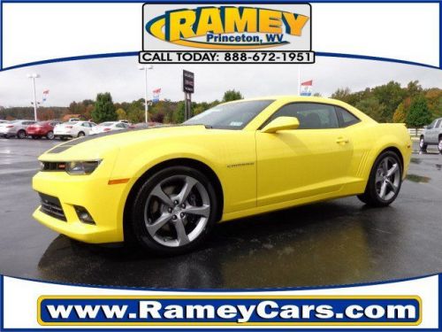 Take a look at this 2014 Chevrolet Camaro. This coupe has excellent gas mileage! This one's a keeper. It has a crash test safety rating of 5 out of 5 stars. Heads Up Display projects vital information directly in front of you on your windshield. Keep warm and toasty your whole ride with the heated seats! This sleek vehicle comes with leather upholstery. Stay safe on the road with anti-lock brakes, a backup camera, OnStar Communication System and stability control. This coupe has a sporty look with the rear spoiler feature. Experience driving in a whole new way: Take advantage of the power driver's seat and enjoy long-lasting comfort. Looking for a specific model? Call today for more information. Now lets 'Do The Deal!'. Contact Information: Ramey Motors, P.o. Box 1755, Princeton, WV, 24740, Phone: 866-209-4842, E-mail: phowell_rameyprinceton@gs.reyrey.com. Ramey Motors has been serving its community since 1955! We have an outstanding sales staff and are here to meet all of your needs! We have experts on new and used vehicles, and in our parts and service department. Stop by and see us today!