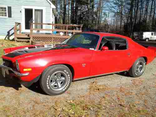 SELLING FOR FRIEND. ALL INQUIRES MUST GO TO MVP82@MYFAIRPOINT.NET . 1971 CAMARO A TRUE SS .HAS TWO TONE SEATS . PAINT APPEARS TO HAVE BEEN DONE BUT DONE VERY WELL. ORIGINAL MATCHING NUMBERS CAR EXCEPT THE INTAKE AND CARB HAVE BEEN REPLACED. DUAL EXHAUST HAS BEEN REPLACED.HAS AN 8 TRACK BUT NOT SURE IF ITS PERIOD CORRECT FOR THIS YEAR CAR. IT IS A TRUE 270HP 350. I AM CERTAINLY NOT AN EXPERT ON THESE CARS SO ANY QUESTIONS USE THE EMAIL ADDRESS ABOVE. DO NOT BOTHER TO EMAIL LOWER OFFERS.