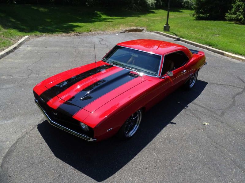 For further questions email me : zazilieselmsdorfx@gmx.de 1969 Camaro Resto Mod for sale. Powered by a 496 CI Big Block from Blue Print engines and a 5 speed Tremec transmission this Camaro is the real deal. The engine features, Hypereutectic Heads, a flat tappet cam, and a cast steel crank. Ignition is MSD electronic. Fuel is supplied by a Go EFI 4 unit by FITech. Options on this car include air conditioning, AM FM stereo, power brakes and power steering, and power locks. ^The exhaust system is by MagnaFlo, Street Series Performance system with a set of Doug's shorti headers and the brakes are Wilwood. The leather interior in this car features updated bucket seats, a 5-piece gauge set including an electric speedometer installed in the dash, custom door panels, custom door handles and window cranks. The steering wheel has been upgraded. This Camaro runs on Weld wheels that are wrapped in NITTO Tires and it Has a Ford 9" rear with coil over suspension. Only 6.303 miles since rebuilt, A very good items for your colection!!!