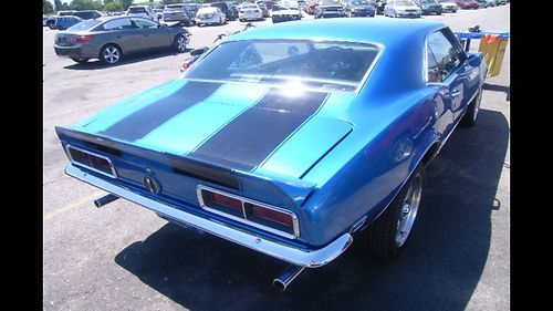" WoW " This is 68 Chevy camero rally sport 350 block turbo 400 trans clean in and out fully restored interior black exterior midnight blue 21,000 og miles need to sell ASAP moving out of state need the money. My loss your gain the only thing it needs is 2 head lights and a stereo . Hurry won't last good luck bidding thanks .