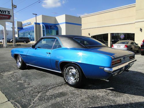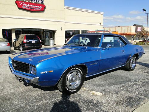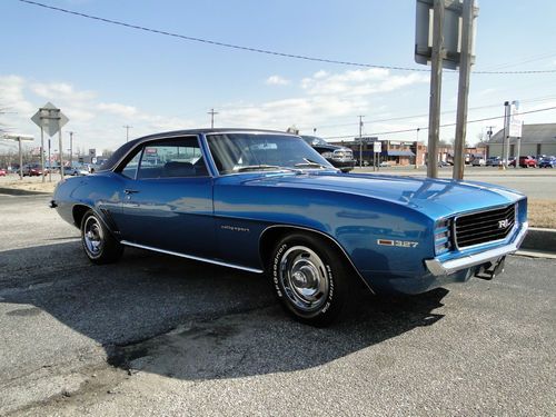 Here is a original numbers matching 1969 Chevy Camaro RS. This camaro has been completely restored and comes with its original 327 small block and 4 speed transmission. It was restored to its factory lemans blue with black bucket seats and a center console. She was finished recently and has amazing paint, chrome and interior. The undercarriage is super clean with solid floor and trunk pans. The 327 in this car was rebuilt to factory specs with its original style carb, exhaust manifolds, intake manifold, etc she is exactly what you would expect of a 1969 327 Camaro. Call for more details.