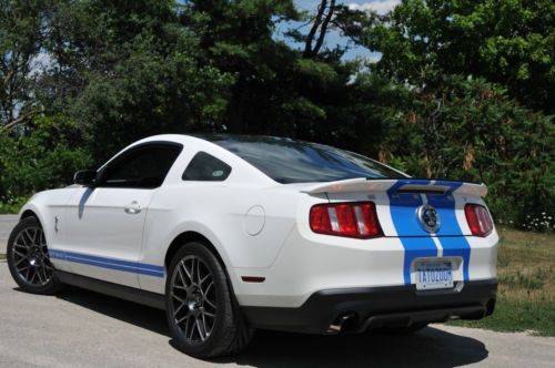 "First Offering of a Special Edition 2011 Shelby GT500 Cobra, autographed & authenticated by motoring legend Carroll Shelby”. Auctioned at the Canadian International Auto Show event in Toronto, Ontario, on February 10, 2010 to commemorate Carroll’s induction into the Canadian Automobile Hall of Fame. This Shelby Cobra is 1 of 2 in existence: Specially ordered by the Toronto Automotive Dealers Association (TADA) to pay Tribute to Carroll Shelby at the Gala Event. Collector Car Trophy Case includes: Gala Evening Program, Admittance Ticket, COA, Autographed Photo, Duplicate matching Shelby Serial Number Plates, and Winning Bidder Registration Card (Toronto Autoshow Authentication Letter available for Serious Inquiries). In Showroom Condition: Original “Performance White” paint with special Tribute decals & blue racing stripes, with black leather interior, and autographed visor. Powered by a Supercharged 5.4L Aluminum V8, 550 hp , 510 lbs torque, 6-speed manual transmission. Equipped with Navigation, Glass Roof with Sunshade, Shaker 500 juke box, Microsoft NSYNC, and SVT Track Pack. Stored with great care and sparingly driven. Acquired from auction winner with an odometer reading of 115km (69 miles) and owned ever since. The current odometer reading just turned 4,500 km (2,700 miles) |