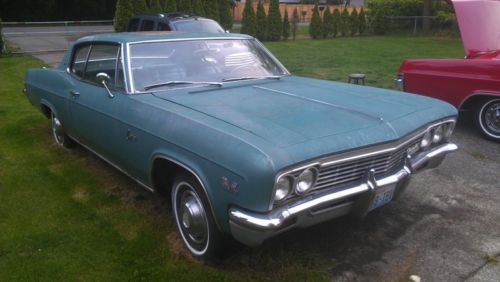 Available here is a 1966 Chevy Caprice in the Rare color combination of Aqua on Aqua. As you can see from the pictures, the interior is complete, although it needs some repairs to the seat covers and rear shelf. The car comes with an extra (used) dash pad that is in very good condition. This diamond in the rough needs a new paint job, but there doesn't appear to be any rust, except for the VERY light surface rust on the roof. The car comes with the numbers matching motor, which isn't running currently, and it comes with an extra, running big block 396. Haggerty prices a daily driver at almost $15,000 but I think that's a little extreme, and since this beauty needs some work to make her beautiful once again, I'm starting the auction at a very reasonable $4500. The buyer will have to arrange shipping, and I'll do whatever it takes to help accommodate the transportation vehicle. My Plans were to RestoMod this awesome car, unfortunately my Mother suffered a stroke a couple of years ago, and moving her into my house to care for her has been incredibly expensive. At $4500 I'm taking a loss on this awesome car, but the money I do get will go to a good cause and I'm hoping the new owner will stuff a nice LS under the hood & take good care of her. Thanks for looking and good luck bidding. |