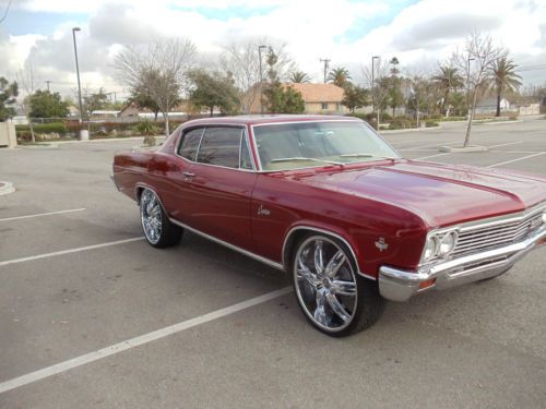 1966 Chevrolet Caprice: Candy Red Exterior, 8 Cylinders, Kenwood CD, 24" Dub Rims, Odometer Reads: 76,454, VIN: 166476N140522. This car is a one of a kind fully restored car with upgraded dish brakes, power assist brake system, and a clean leather interior with no rips. Everything works with absolutely no rust. Chrome engine with all bushings replaced. Car handles and drives like new. RARE FIND. Manual is available. Can deliver Internationally (Please contact me for details). Im a California Licensed dealer Superior Auto Center@ 16720 Foothill Blvd. Fontana, Ca (909)-822-0404 License #45782. Buy with confidence. Contact me if you have any questions.
