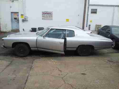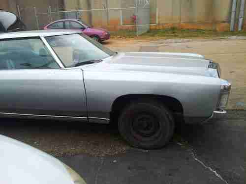 1971 CHEVY CAPRICE 2 DOOR HARDTOP WITH 350 MOTOR AND TRANS RUNS STRONG WILL FIRE RIGHT UP. THE "BUMPER" AND "GRILL" JUST NEED BOLTS INSTALLED TO HOLD THEM UP. PAINT IS GOOD THE FRONT "CHROME" HEADER PANEL IS GOOD THE "CHROME" FENDER EXTENSION GOOD THE PASSENGER SIDE FENDER EXTENSION NEEDS REDONE THE CHROME GRILL IS GOOD. THE "CHROME" TRIM ON THE BACK WINDOW HAS SOME RUST IT CAN BE POLISHED AWAY I HAVE THE OTHER HEADLIGHT BEZEL. 1 OF THE TURN SIGNAL LENS IS MISSING. THE PASSENGER SIDE HAD A MIRROR BUT IT WAS TOOK OFF/ I STILL HAVE IT HEADLIGHT,TURN SIGNAL,BRAKE LIGHT ECT ALL WORK..... ALL OTHER TRIM PARTS ARE ON THE CAR. THE SEATS HAVE BEEN REDONE GRAY/RED THE CARPET HAS NOT BEEN DONE OR THE HEADLINER,DASH HAS NOT BEEN TOUCHED. THIS IS A GREAT DEAL IF YOU KNOW ABOUT THE 71 CAPRICE,,,,,, ANY PART FOR THIS CAR CAN BE FOUND RIGHT HERE ON EBAY. CHECK OUT THE BLUE 1 I RESTORED.. SO HERE IS YOUR CHANCE TO GET THAT "DONK 71" YOU BEEN LOOKING FOR . THIS CAR CAN BE FLAWLESS WITH A LITTLE TLC... PLEASE FEEL FREE TO CONTACT ME IF ANY QUESTIONS AT ALL. I RESPOND TO EMAILS QUICKLEY.... Check out my other items! Be sure to add me to your favorites list!