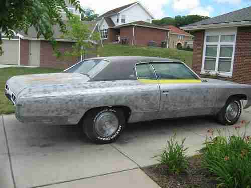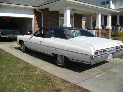 Up for Auction is a 1971 Chevy Caprice all original with 90,500 original miles.the car is equipped with a small block 400 and 350 trans that run and drives great with no problems. the engine has been all redone with all new gaskets hoes, belt, Tune up and rebuilt carb. New shocks and true Dual Exhaust. ( NOTE ) the car is disassembled and needing some body work and paint. Overall the body is soild and clean. Floors, Trunk , Doors, Frame, are all solid. Quarters and fenders needs minor work. Interior is all new. Dash does need redone ( justdash.com) is where i was going to send it. Vinly Top is New , Bumpers have been rechromed and por 15 on the backside so has the undercarige of the car. All of the hard part of this car is done just needs paint and your ready for the summer. If you have any Question please contact Lenier 330-785-6538