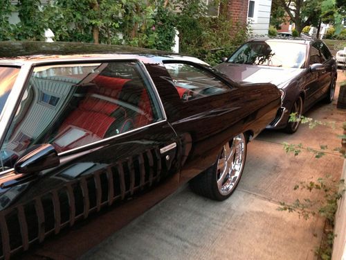 You are bidding on a 1975 chevy caprice 2 door hard top , Black , 23'' rims led tail lights & Dig dash from Dakota dig, red & black vinyl seats, new dome light, air horn & complete audio system