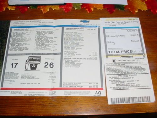 THE BEST WAY TO START IS THIS CAR SMELLS AND LOOKS NEW---PURCHASED NEW AND THE CARPETS AND MATS WERE COVERED WITH PLASTIC FROM DAY ONE---NEVER BEEN THROUGH A CAR WASH---HAND WASHED AND WAXED---STORED IN A WAREHOUSE WITH HEAT AND A/C---WAS GOING TO BE PASSED DOWN BUT THINGS CHANGED---CAR HAS 1913 MILES TODAY---I DRIVE IT A FEW MILES EARLY SUNDAY MORNING---CAR WAS SPECIAL ORDERED---BOLT SECURITY SYSTEM---WINDOWS ETCHED---LEATHER 55/45 SEATS---5.7 SFI V/8 ENGINE----SPORT SUSPENSION----AM/FM WITH CD----STAINLESS STEEL EXHAUST----4 WHEEL ANTI-LOCK BRAKES---FULL COIL SUSPENSION---NEW MEXICO CAR ABSOLUTELY NO RUST----NO ACCIDENTS---NO PAINT WORK----ALL ORIGINAL----BOTH REMOTES----ALL BOOKS AND BROCHURES----ORIGINAL INVOICE---THIS CAR COST OVER 25K IN 1996---IF YOU WANT A NEW 1996 THIS IS AS CLOSE AS IT GETS---THIS IS A FULLY OPTIONED CAR---I WELCOME ANYONE TO SEND A CERTIFIED INSPECTOR---CAR MUST BE SHIPPED IN AN ENCLOSED TRAILOR OR PICKED UP LOCAL---NO TRADES---CAR HAS A HIGH RESERVE BUT THIS IS A TRUE LAST OF THE BIG CRUISERS---MAINTAINED THIS WILL GO FOR YEARS----HATE TO SELL BUT AFRAID TO DRIVE IT -----PLEASE CALL 505-269-6594 WITH QUESTIONS----THANKS SMOKEY