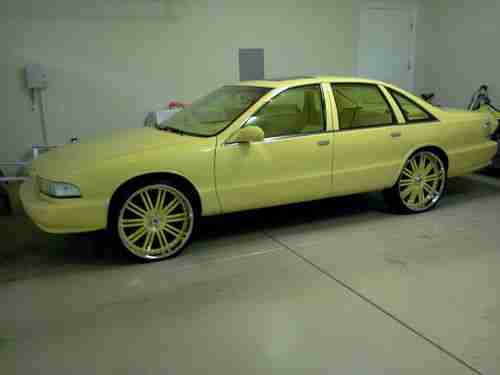 Custom pearl yellow paint. SS Impala motor. 24 inch Asanti rims, yellow suede interior. Custom sounds w/tvs. BadASS car!! Over 80k invested...