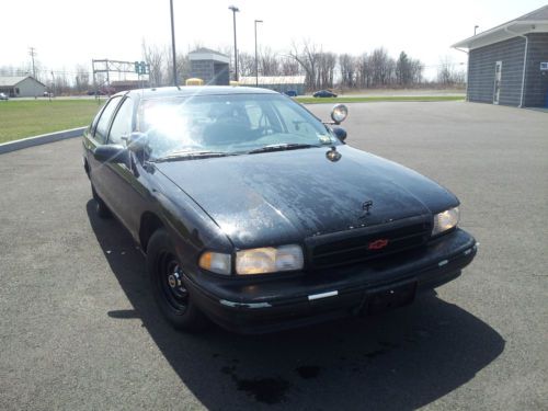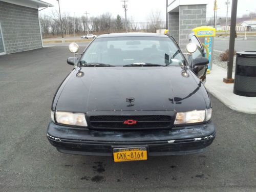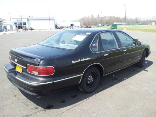 Black 1995 Chevrolet Caprice 9C1 141200 Miles Police style spot lights on both drivers and passenger side! has the rear window lights and flashing trunk lid lights Car runs well with no leaks Has been converted to a floor shift Previous owner replaced front brakes,front shocks,and transmission New starter in march 2014 New battery in december 2013 Comes with manual, extra set of tail lights, Passenger air bag is missing front right fender has rust , new rust free replacement fender included in auction left rear door needs the window motor replaced ,replacement motor included in auction car must be pick up by may 11 |