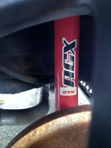 Has new KYB AGX adjustable struts/shocks and Eibach pro lowering springs rides very well handles like on rails.