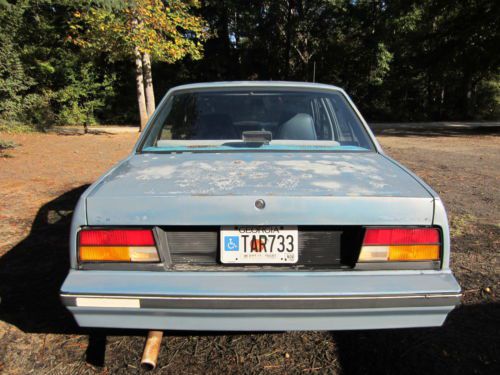 This is a Used 1987 Chevrolet Cavalier CS. I got the car from my wife's sister. I no longer need this car. She had this car for about 24 yrs. A/C DOES NOT WORK. Car runs, cheap on gas & has almost new Bridgestone tires. I have clear title. Non smoking. Buyer is responsible for pick up or shipping. Paypal or Cash only, three hundred paid within 24 hrs. of auction to Paypal. This car is being sold AS IS. MILAGE IS UNKNOWN