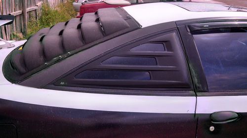 One of a kind front and rear (my own design). Front fenders widened 3" each and open rear "Viper style". After market parts include: 2" drop springs, front and rear strut tower braces, wing, rear and side louvers, wind/rain guards, carbon fiber "Evo" hood with rain shield for openings in hood, coil booster packs, rear sway bar, silver dash face with blue or green illumination, projection beam "halo" headlights w/LEDS, LED taillights, 2 pair driving lights, K & N air filter. Also includes OEM springs (front springs, rear assembled struts), front and rear metal bumpers and covers, one spare 17" silver 11 spoke rim, 1 spare 18" tire on damaged rim (hit curb), 2 18" white 7 spoke rims and 2 17" silver 11 spoke rims. Just replaced many front suspension components due to hitting a curb. One owner vehicle. Automatic transmission (recently rebuilt-have receipt from Aamco). Clean title. Front end has a steel sub frame behind fiberglass (custom built). Main dash structure dry-rotted and broke below steering wheel and forward of dash cover (made cover for missing section in front of dash cover). Mileage is high but vehicle has been well maintained. Selling due to original engine spinning a bearing and replacement (used) engine is doing the same thing. I have other projects I need to work on without worrying about another "used" engine failing.