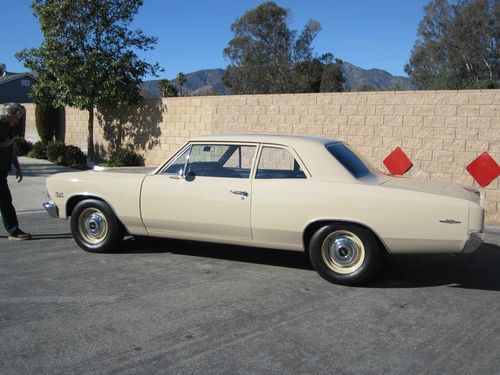 For Sale: We have a 1966 Chevelle 300 Deluxe Sedan. This car has had a complete body off restoration. The motor is a 427 big block w/ a Muncie 4-Speed. The rear end is a 10 bolt posi. The car has front disc brakes and front and rear sway bars. The rims are vintage American Racing Torque Thrust "D" spoke wheels. Interior is all new black original style interior. It has a bench seat in front. The car is beige in color w/ black interior. You will be hard pressed to find a nicer 300 Sedan Deluxe. Buyer responsible for pickup or shipping. International buyer please contact seller before bidding or making offer.$1,000.00 deposit required.If you have any concerns call Stan at 909-518-4536.