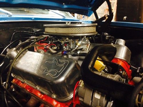 Drive train is very solid and will carry the car anywhere! Motor is a very healthy 396 with a nice hitting 280 cam with longtube headers and flowmaster exhaust .New Edlebrock dual plain intake . NEW Holley 770 Street Avenger Carb. Newly rebuilt Turbo 350 automatic trans. 10 bolt rear end with new axles with 308 gears. Nice set of CRAGER SS wheels back tires have lots of life left front are showing some age.