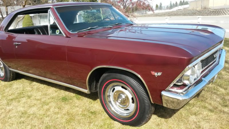 Very nice , rust free, 1966 Malibu Sport Coupe, Fresh Frame Up restoration less than 100 miles ago, 350hp-350, Muncie M-20 4-speed, 12 bolt positraction rear end w/390 gears, Buckets and console, Knee knocker tach, power steering, power disc brakes, new dual exhaust, everything either new or rebuilt, great car, ready for car shows and cruising