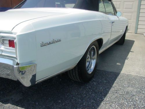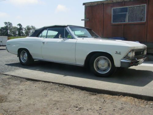 1966 Chevy Chevelle convertible - SS clone with all of the right pieces used - 396 V8 engine - Factory Air Conditioning - New Holley carb - Edelbrock manifold - MSD distributor and ignition - Dual brake master cylinder - Power drum brakes, front and rear - Four speed Muncie transmission - 12 bolt positraction rear end - Flowmaster mufflers and dual exhaust - New ralley wheels, trim rings and caps - New B.F.Goodrich Radial TA's - Very nice white paint - Black bucket seat interior - Radio delete - Black manual top (not power) - Tachometer - 143,000 miles - The firewall tag says 66 13667 - Bumpers, grill and trim are in very good condition - The paint and body are also very nice, with a couple of small chips that have been touched up - There are a couple of very small scuffs on the top The car was purchased several years ago at a Hot August Nights auction in Reno, so its history is not know - It runs perfectly and burns no oil - It has made several long distance trips without incident, so it is a very dependable driver - The underside of the car is nice, but should be considered driver quality - While this is not a 100 point car, it is an excellent driver that can hold its own at any show car and always turns heads I am listing this car for a friend - If you have any questions I will get you an answer - If you would like to view the car it can be arranged Search words: 1932 1933 1934 1935 1936 1937 1938 1939 1940 1941 1967 coupe sedan roadster scta socal gasser drag show isca kustom custom sled leadsled merc mercury lifted chop chopped chopper kemp channeled sectioned nosed decked shaved louvered flathead blower blown vintage american halibrand ss rs rt se gs gto goat 454 426 396 392 383 428 427 390 mach cobra fe tripower ram air ramair hemi Barris Winfield Ratfink slick slicks straight axle mag magneto mopar patina barn find Bonneville Utah speed salt flats restored dropped lowered quickchange posi tremec muncie hurst corvette camaro chevelle malibu cuda challenger charger mustang superbee galaxie torino falcon ranchero el camino talladega daytona nascar cyclone superbird cameo stepside shoebox goodguys award trophy winner museum fastback spoiler magnum la hot rod hotrod magazine disc shaker 500 grabber shelby henry steel ford rat rod ratrod candy