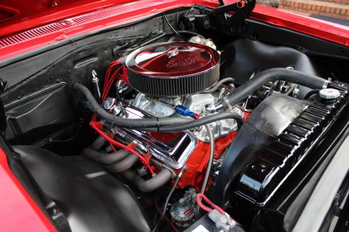 1967 MALIBU IN A NUT SHELL: This is a good running good looking car! The read paint is nice, the 350 engine runs very strong, the Turbo 350 engine shifts like it should, the chrome is nice, the interior good, but not all new, the brakes are disc on the front and drums on the rear, the steering is good the car is power steering, the wheels 18 inch on front and 20 inch on the rear and they are Coys, the floors look original to me with a couple of very small patches, the car runs out very good.