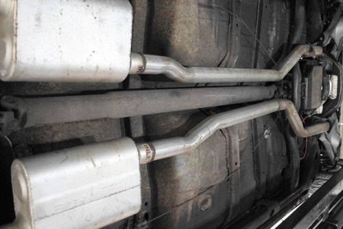 EXHAUST SYSTEM: Dual exhaust in good condition, the mufflers look and sound like Flow Masters to me, the sound is real Muscle Car. TRANSMISSION: Its a Turbo 350 that shifts good with a BM shifter that works good. REAR-END: It has no bearing noises, no growls, its a 10 bolt, its a good highway gearing. BRAKES: Good with disc on front and drums on the rear, not power. STEERING: The cars drives very good, it is power steering, lots of new front end parts like ball joints and bushings.