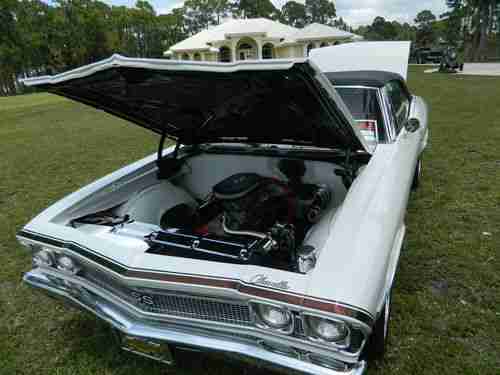 !968 Chevelle SS Convertable Tribute Not a true SS But Has SS Trim 350 Crate Motor Turbo 350 Trans 12 bolt Posi rear frame off restoration . Global West Front and rear Suspension . 4 Wheel power disc brakes . Stainless Brake and Fuel lines. Custom dash with auto meter gauges. Billet specialties valve covers and air cleaner holly carb, march power steering pump and pully billet alt bracket ,chrome water pump and altnew wire harness $15,000 custom vibrance pearl paint job boyd wheels 18inch. new top all new rubber wheater stipping .everything new or rebuilt. we reserve the right to end the auction early as I have it for sale locally .you will not be dissapointed great driver possable trade for 1969 Camaro convertable project and cash.email for more info thanks for looking. no warrenty expressed or implyed