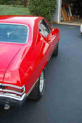 For Sale is my 1968 Chevrolet Chevelle two door coupe. I purchased this vehicle in December of 2004 in Georgia and drove it home to Virginia to begin the restoration process. The vehicle has SS badging and correct 1968 SS stripes but is not an original SS. I would describe this vehicle as more of a pro touring style restoration. It is first and foremost a driver but has won several awards at local car shows here in Central Virginia. The car is garage kept and has only seen rain when I got caught out in it. The car is sorted out mechanically and only needs a few minor interior and chrome pieces to be finished. I will be putting new front and rear bumpers with new mounting hardware and lenses on in the next week or so. This vehicle is not perfect but I did not restore it to be a trailer queen. I wanted something I could drive and enjoy along with showing it at local car shows. Below is a summary of the work done to the vehicle but does not cover all upgrades. I would venture to guess that you could not restore this car for what my reserve is set at.