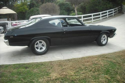 Rust free 1969 big block Chevelle, no patch panels or quarter replacements; solid floors and trunk; 2 stage black paint; rebuilt 454 engine with Edelbrock 4-barrel carb; HEI distributor; Hooker headers with Flowmaster mufflers; aluminum radiator; power steering; original power disc brakes; high torque starter; Muncie aluminum M21 trans with 11" clutch; Hurst shifter; 10 bolt rear end; bucket seats (driver seat is electric); console; stereo CD player; new weather stripping and window felts; polished American torque thrust wheels, fronts 15/7 with Goodrich 225/65/15, rear 15/8 with Goodrich 275/60/15. Much more, beautiful car, drives excellent. For more info call 951 852-3623. I reserve the right to cancel this ad at any time due to local listing.