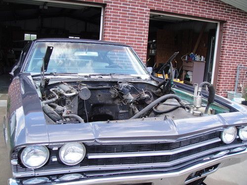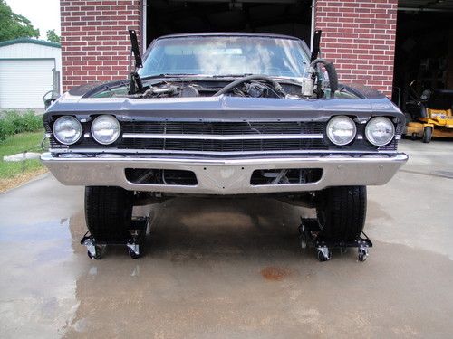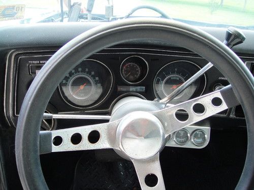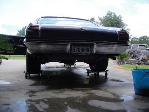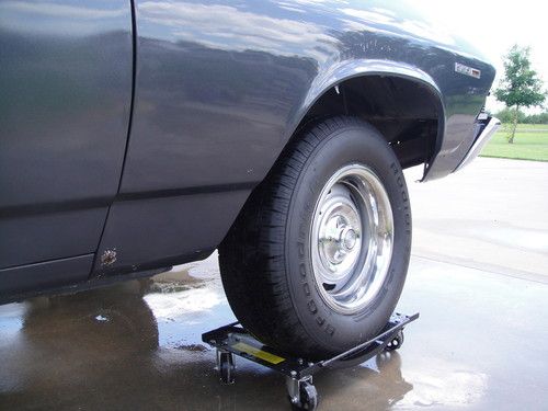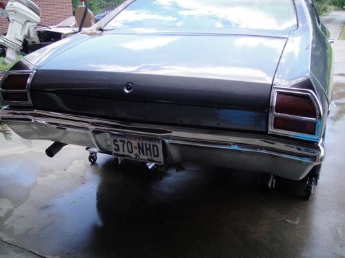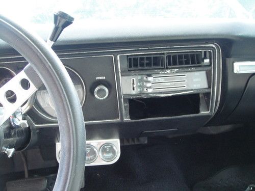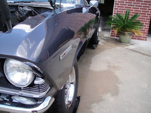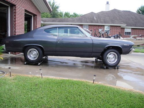 1969 Chevelle, Malibu roller. Factory Air-condition (Frigidaire compressor is included.) Power steering with manual brakes. 10 bolt non-positraction rear. Door panels, carpet and dash are new. The seat covers will need to be replaced. The paint is a metallic-gray that was applied by the previous owner. It is an 7.5 out of 10 and isn't perfect by any means but judge for yourself. There are some scratched and chips in the paint. I had planned to repaint it back to the original Olympic Gold. There is rust beneath the drivers side rear window and at the lower side of the front fenders. The body appears solid. The glass is free of cracks but has a few scratches. The original trim will be included. I'm not sure it is a complete set but there is a lot of it in fair condition. I purchased this car with a 350/TH350 from West Texas a few years ago and drove it home. I've sold the drivetrain so this is a roller only. I intended to install a LS 6.0/4L80E combination but have placed it in my 1972 Nova instead. The car has been in my garage since purchased. The tires and wheels are fairly new 7 inch and 10 inch rally's with BF Goodrich tires (the have almost no miles on them.)